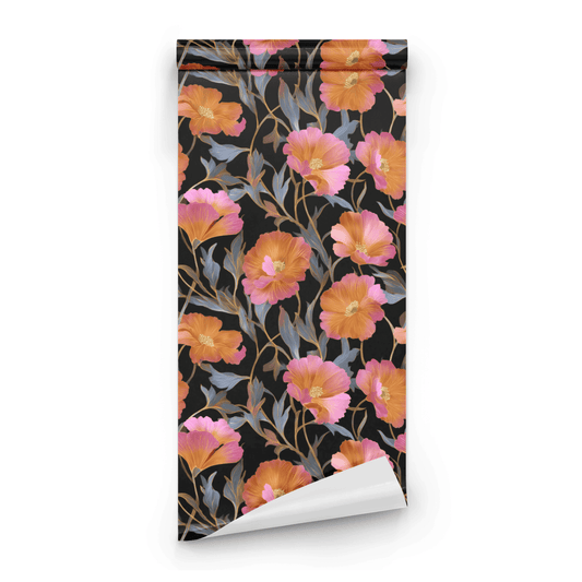Peony Noir Retro Wallpaper