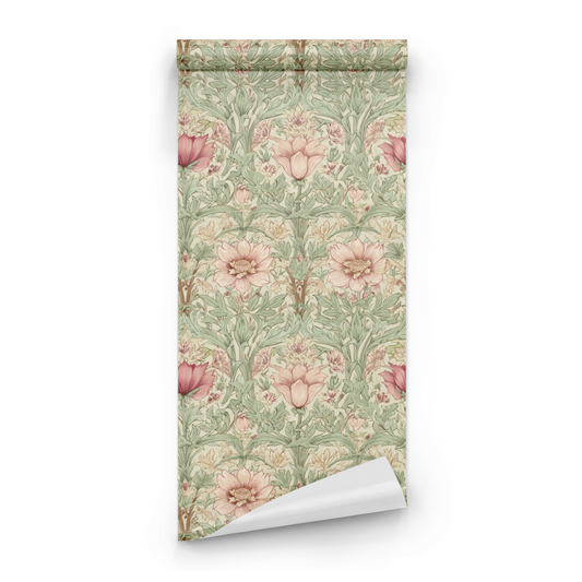 Art Nouveau Coral Flora Wallpaper