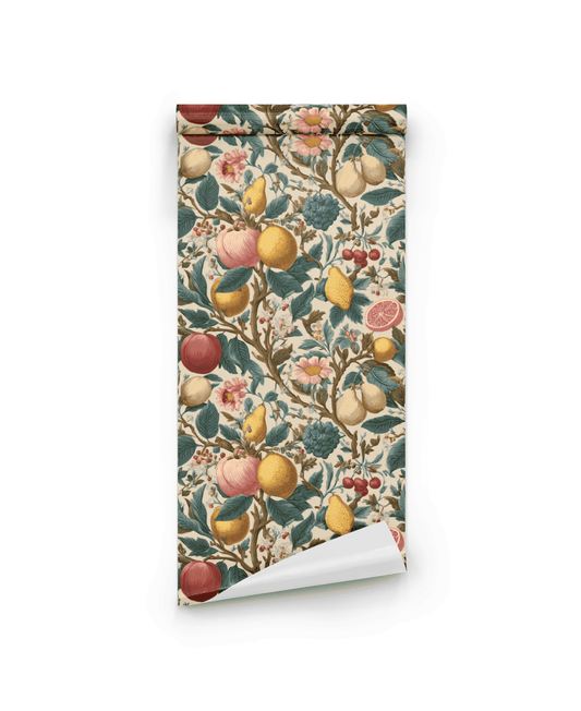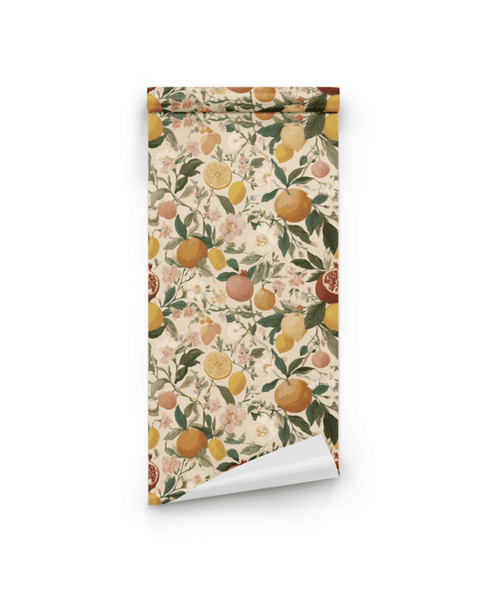The Fruit Wallpaper collection evokes a vibrant, playful atmosphere, bringing the freshness of nature indoors with bold colors and whimsical patterns that celebrate the joy of summer.