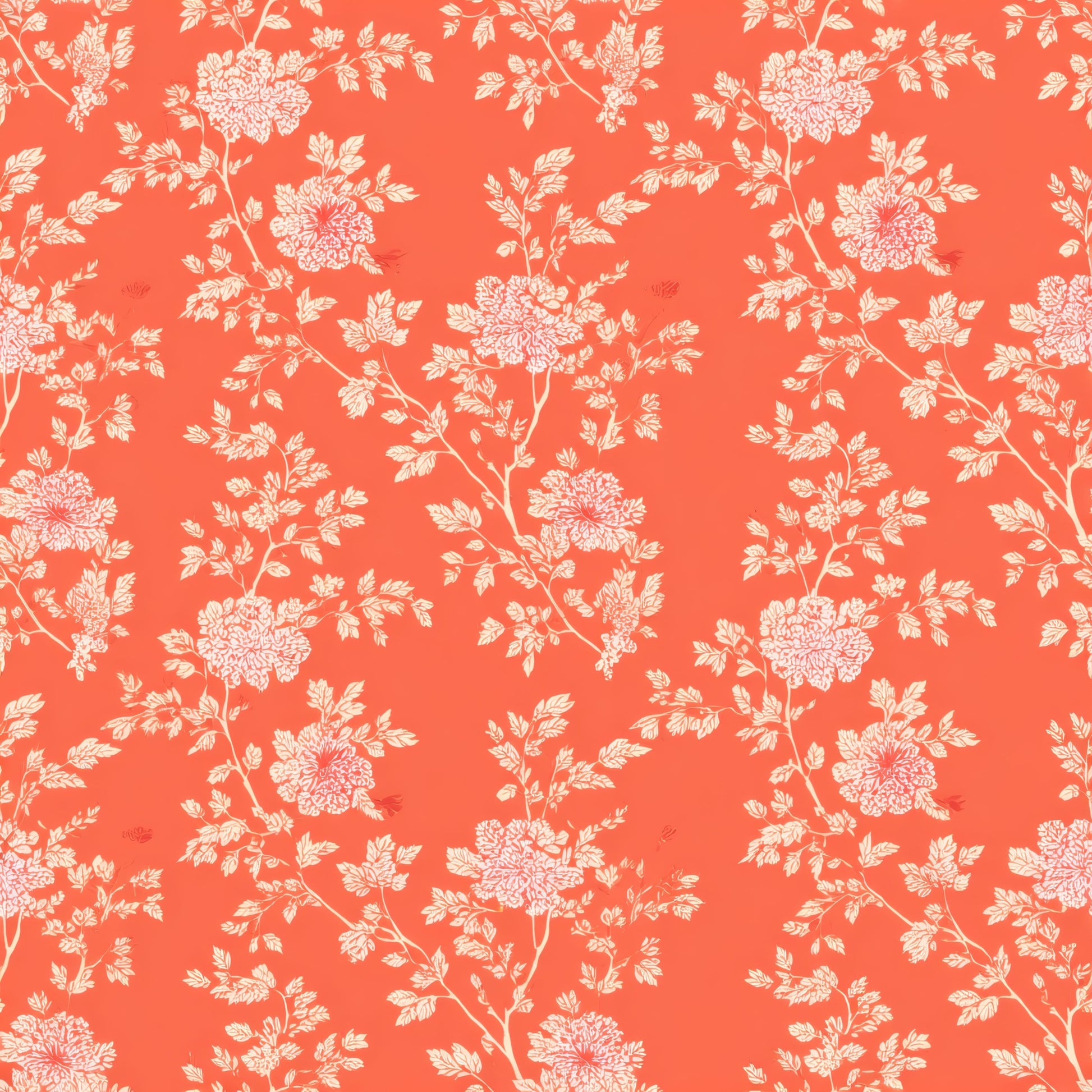 This stunning wallpaper features intricate white floral motifs set against a vibrant coral backdrop. The delicate branches and blossoms weave gracefully across the surface, creating a harmonious and lively atmosphere perfect for enhancing any space.