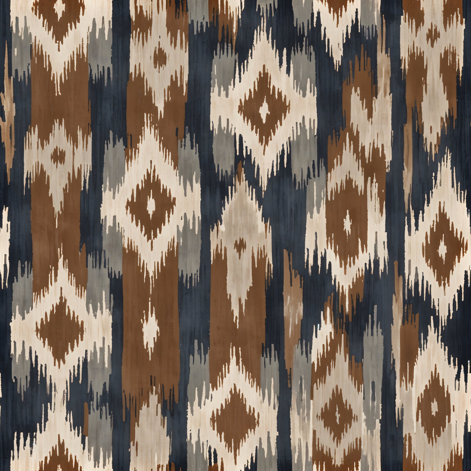 Introducing the Rustic Ikat Earthtone Wallpaper, a design that brilliantly captures the essence of traditional Ikat patterns with a modern twist. The dominant motif features a striking geometrical pattern with diamond and arrow-like shapes creating a sense of movement and texture. The primary color family includes warm earth tones like deep brown, beige, and grey, giving it a rich and inviting appeal. This wallpaper evokes a traditional yet timeless style that could be reminiscent of mid-century modern aesthetics or rustic farmhouse charm.