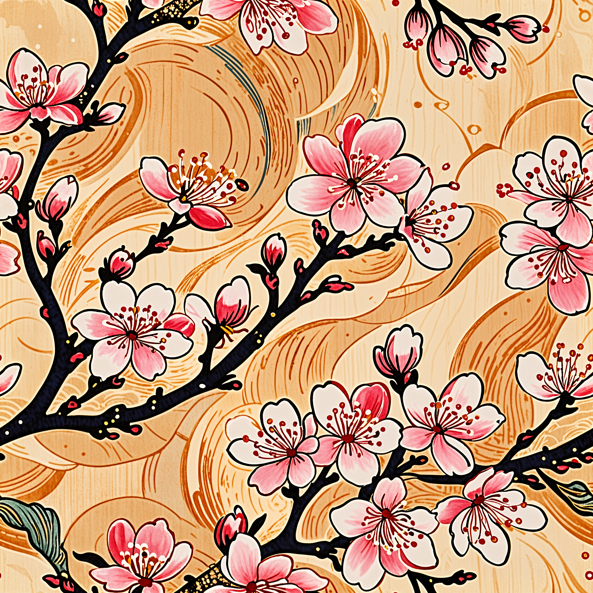 Introducing the Sakura Wave Cream Wallpaper, a stunning blend of nature and art with its prominent cherry blossom motif intertwined with elegant wave patterns. The dominant color family is a rich palette of soft creams and pastel pinks, embodying a serene and refined style reminiscent of traditional Japanese aesthetics. This wallpaper brings a touch of classic sophistication and gentle grace to any setting.