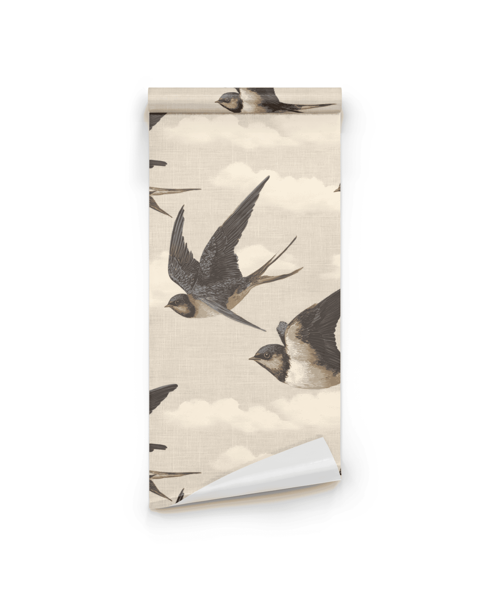 Embrace serene elegance with this wallpaper featuring graceful swallows gliding through gentle clouds on a soft, textured canvas.